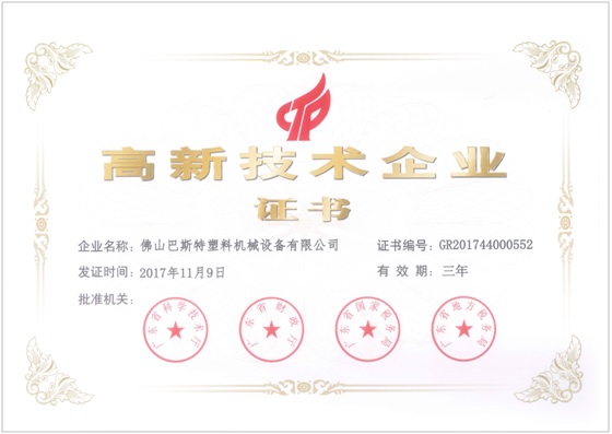 放眼全球,巴斯特的設備一直以產品穩定,性能優越,高效節能著稱,在塑料設備領域實現數字化、多元化、國際化升級發展。憑借強大的經營陣容和技術團隊,巴斯特通過不斷地創新實踐來引領行業節能高質量發展,公司自主研發申請并授權的專利多達32項,設備的能耗、效率及穩定性均名列前茅,應用相關專利技術的設備性能達到了同行業的領先水平。